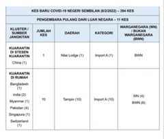 Kemaskini Negeri COVID-19 di Malaysia 08 FEB 2022