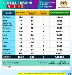 Kemaskini Negeri COVID-19 di Malaysia 10 MAC 2022