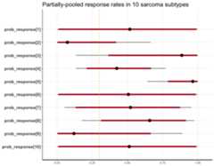 We demonstrate the method for partially-pooling response rates to asingle drug in various subtypes of sarcoma. This example is used inThall et al. (2003). Fitting the data to the model: