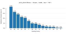setFplot_dict(c(Origin = "Exporting Country", Destination = "Importing Country", Euros = "Exports Value in €", jnl_top_25p = "Pub. in Top 25% journal", jnl_top_5p = "Publications in Top 5% journal", journal = "Journal", institution = "U.S. Institution", Petal.Length = "Petal Length"))The code to run the plots are in the titles of the graphs. You’llnotice that the same command line can result in a set of differentgraphs.
