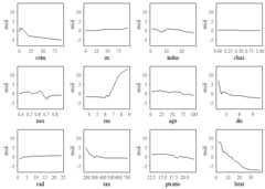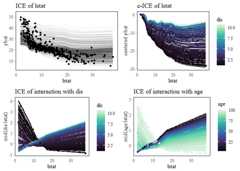 mid.conditional() can be used to compute the ICE curves(Goldstein et al. 2015) of the fitted MID model, as well as thebreakdown of the ICE curves by main and interaction effects.