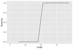 # install.packages("remotes")remotes::install_github("poissonconsulting/ypr")library(ypr)population<-ypr_population(Rk =5,Ls =50,Rmax =100,rho =0.6)ypr_plot_schedule(population,x ="Length",y ="Spawning")