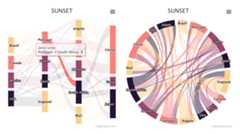library(manipulateWidget)combineWidgets(sankeywheel(from = sankeydf$from,to = sankeydf$to,weight = sankeydf$weight,type ="sankey",width ="100%",theme ="sunset",title ="SUNSET"),sankeywheel(from = sankeydf$from,to = sankeydf$to,weight = sankeydf$weight,type ="dependencywheel",width ="100%",theme ="sunset",title ="SUNSET"),byrow =TRUE,ncol =2,width ="100%",height ="300px")