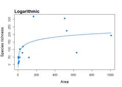 To fit the logarithmic SAR model (Gleason 1922) to the ‘galapagos’data set and plot it