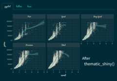 install.packages("showtext")install.packages("ragg"){thematic}’sautotheming gives R plots the ability to style themselves insideShiny (via CSS),RStudio (viaRStudiothemes), andR Markdown (via{bslib}).