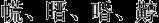 | CJK Extension F | ![]() | 𬺳、𬽰、𭮛、𮓸 |