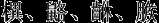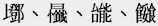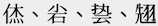 | CJK Extension C | ![]() | 𪢨、𪪖、𫔺、𫜴 |
