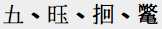 | CJK Extension H | ![]() | 𱍩、𱗺、𱪮、𲋮 |