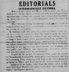 Still, recognizing the complexities raised by intermarriage, the article discussed the fact that no relationship could be divorced from its environment. Intermarriage might affect standing in the public, as well as affect the treatment of their children. But, in the end, the author reassured his readers that while the social implications of intermarriage might not be easy, loving individuals should not avoid marriage because of the potential to face discrimination. He wrote, “could all the people be cosmopolitan, could the people be broadminded enough to mind their own business” they might recognize that in reality, at their heart, these people were the same, and perhaps more enlightened than most of society for recognizing this common bond despite appearances.14