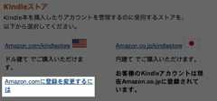 Kindleストアの選択画面になりますので、「Amazon.comに登録を変更するには」をクリックします。