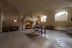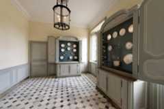 Here is where dishes were prepared before being served in the dining rooms located above, on the first floor. Louis XV once wanted to equip the Petit Trianon with “flying” or retractable tables like those already in use at the Château de Choisy. The system, which was to be located below the dining room (the planned position for it can still be seen today), would have employed counterweights to raise fully set and decorated tables straight up to the first floor through openings that had been specially made in the floor and could be closed at will. However, the price demanded by the engineer Loriot to install it was so high that the king changed his mind.
