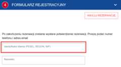 Uwaga: gdy brak numeru PESEL, NIP, REGON