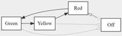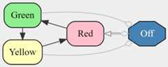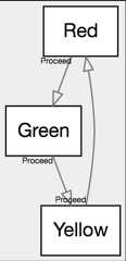 Red 'Proceed' -> Green 'Proceed' -> Yellow 'Proceed' -> Red;This will produce the following FSM (graphed withjssm-viz):