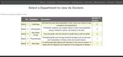 - 5.Take Appointment – Patient can view all the departments, and then can select one dept. Then the doctors of that dept are shown. Then patient selects one doctor and the doctor’s profile is then shown along with a ‘take appointment’ button. When the button is clicked, the free slots of that particular doctor are shown. Patient selects a free slot of his choice and then sends request for that free slot to the doctor. The doctor will then approve/reject it.