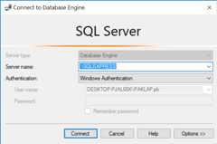 2- Open SQL Server Management Studio and in the "Connect to Database Engine" window type the following: