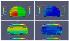 DrivAer model online evaluation: pressure (left) and wall shear stress (right) fields and errors.