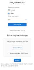 - Weight Prediction:Select your gender and enter your height then click Prediction button