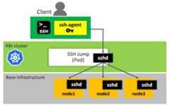 Usage: kubectl ssh-jump <dest_node> [options]Options: <dest_node> Destination node name or IP address dest_node must start from the following letters: ASCII letters 'a' through 'z' or 'A' through 'Z', the digits '0' through '9', or hyphen ('-' -u, --user <sshuser> SSH User name -i, --identity <identity_file> Identity key file, or PEM(Privacy Enhanced Mail) -p, --pubkey <pub_key_file> Public key file -P, --port <port> SSH port for target node SSH server (default:22) -a, --args <args> Args to exec in ssh session --skip-agent Skip automatically starting SSH agent and adding SSH Identity key into the agent before SSH login (=> You need to manage SSH agent by yourself) --cleanup-agent Clearning up SSH agent at the end The agent is NOT cleaned up in case that --skip-agent option is given --cleanup-jump Clearning up sshjump pod at the end Default: Skip cleaning up sshjump pod -h, --help Show this messageExample: Scenario1 - You have private & public SSH key on your side$ kubectl ssh-jump -u myuser -i ~/.ssh/id_rsa -p ~/.ssh/id_rsa.pub hostname Scenario2 - You have .pem file but you don't have public key on your side$ kubectl ssh-jump -u ec2-user -i ~/.ssh/mykey.pem hostnameusername,identity,pubkey,port options are cached, therefore you can omit these options afterward. The options are stored in a file named$HOME/.kube/kubectlssh/options