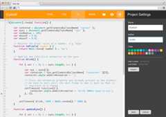 This is Coder's development environment. It's a simple browser-based editor with quick access to all the files that make up your app. It also has a few extra tools to tweak, preview, save, and export your work.