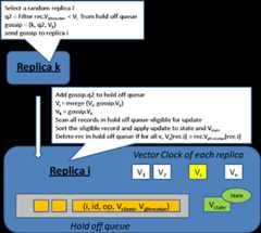 If the client can tolerate a more relax consistency model, we don't need to use the 2PC commit or quorum based protocol as above. Here we describe a Gossip model where updates are propagate asynchronous via gossip message exchanges and an auto-entropy protocol to apply the update such that every replica eventually get to the latest state.