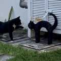 庭に置かれたニセの猫(飾り物)を見て…不審に思う猫(動画)