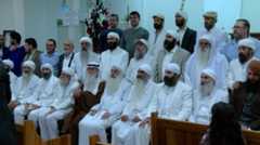 For the Mandaeans in the rest of the world, there are difficulties – not only is there a shortage of priests, but the policy in many of their new homelands is to spread them all over the country, which lessens their chances of building up viable communities. But in Scandinavia and Australia, the numbers are large enough for them to build community associations and Mandis (places of worship). The picture above, taken in Sydney in 2016, shows the two Rishammas (world leaders), Ganzibri (High Priests),Tarmidi (priests) and Shkandi (assistants, deacons) from around the world, alongside members of the congregation.
