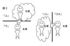 それに対して、世界を横に切って「上」と「下」に分けて、その間に本質的な対抗関係を見て、「下」に味方するのが左翼である。(図1)