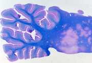 A 39-year-old woman with Hodgkin’s disease developeda rapid succession of neurologic deficits. First, therewas left facial weakness, followed by ataxia and weaknessof the left hand. One month later, a left visual fieldcut appeared, then left hemiparesis. CSF was normal.MRI showed areas of demyelination without mass effect.Two months later, right hemiparesis and upward gazeparalysis appeared. Gradually she became comatose anddied four months after the onset of her illness.