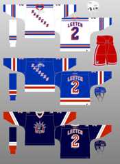 The Rangers return to the navy blue Lady Liberty jersey, and the white jersey now features a tie-down collar.