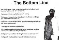 In 1999, Sandia National Laboratories compiled a400-page profile of Bin Laden – far more comprehensive than the CIA’s brief 1996 sketch, and no doubt reflecting his stratospheric rise in importance to the United States. The report found that the African embassy attacks did not take the U.S. by surprise, given its existing counterterrorism intelligence capabilities. It added that the retaliatory cruise missile strikes orderd by Clinton – which unfortunately destroyed a Sudanese pharmaceutical plant and killed several suspected terrorists training in Afghanistan instead of their intended targets – “did little to help solve the problem posed by bin Laden and may ultimately prove to have done more harm than good.” The Sandia analysts concluded – chillingly – that the bombings showed “The ‘war’ on terrorism will never be ‘won.’”