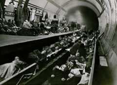 英国ロンドンでは、1940年にドイツによる空襲が始まり、地下駅への避難が推奨されました。下の写真は、ドイツ軍機の空襲を受けて地下駅に避難したロンドン市民の様子です。第二次大戦中は約80駅に17万人が避難し、二段ベッドや医薬品なども用意されたといいます。