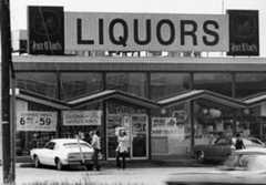 By the 1970s, Admiral Wilson Boulevard became more known for its strip clubs, seedy motels, gas stations, and liquor stores than for the aesthetic value its original planners anticipated. Unlike Pennsylvania, where the state had a monopoly on liquor sales and dictates prices, New Jersey stores were able to be more flexible with their products. Admiral Wilson Boulevard became populated with liquor stores advertising cheaper prices than those available just over the bridge in Philadelphia. These stores, including the Four Winds liquor store shown here, shared the route with a host of businesses such as strip clubs and hourly-rate motels that gave Admiral Wilson Boulevard a reputation as a hotbed for sex work and crime.