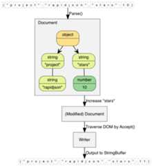 This simple example parses a JSON string into a document (DOM), make a simple modification of the DOM, and finally stringify the DOM to a JSON string.