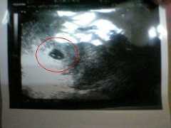 エコーには、確かに白い丸が二つ、ちょんちょんと見える。