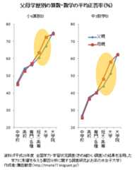 上記サイトにて報告書の全文をダウンロードし,中をみると,あるわあるわ,家庭環境の設問と学力(平均正答率)のクロス表がわんさと載ってます。以前は半ばタブー視されていた学力の社会的規定性の問題に,公的な関心が高まっているのですね。結構なことです。