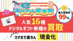 \ 人気のデジタルギフト券を即買取! /店舗名サカナ倶楽部買取率初回96%2回目~90%振込時間30分営業時間24H 年中無休振込手数料無料キャンペーンLINEお友達登録で買取1.0%UP公式URLhttps://sakana-club.com/対応券種16種対応少額買取1000円~