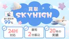 majica即日OK深夜・夜間土日祝日特典イベントLINE申込手数料無料最高買取率 91.5% 高換金条件 LINEお友だち登録で初回買取率UP! ◎買取スカイハイおすすめポイント・24時間営業・最短30分振込のスピード対応