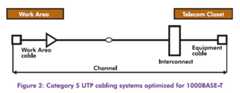 Topology rules for 1000BASE-T should be the same as those used for 100BASE-TX. Category 5 link lengths are limited to 100 meters by the TIA/EIA-568-A cabling standard. 1000BASE-T is specified for operation over those link lengths, as is 100BASE-TX. Half-duplex collision domains are similar to 100BASE-TX; however, each halfduplex collision domain can support only one half-duplex repeater.