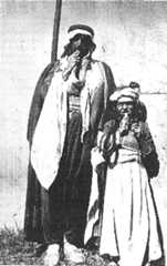 Theshaikhof Shaikh Mand and his daughter "Snake-Poison.![]() Rashid added that theshaikhs of Shaikh Mand ate serpents raw and suffered no harm. Theshaikh and his little daughter now entered our courtyard. Large serpents, one brown and one black, were draped about the necks of the man and child, their tails falling behind like fur boas worn years ago by European women. Theshaikh unwound the big black snake from Jahera's neck, and it slithered along in the sparse grass looking very evil indeed. It was some five or six feet in length and its body two inches or more in thickness. He caught it again, returned it to the child and then displayed his own. I disbursed an offering and then theshaikh and the ugly little girl posed for their photographs, holding the snakes' flat heads close to their lips. | |