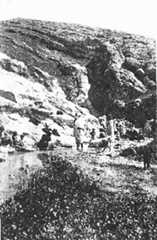 | We mounted past lime-kilns andjuss2 pits on stonyand rocky paths where grass was scanty and the wild flowers, mostly scarlet ranunculus, wild iris, anemones, and campions, seemed the lovelier because of the sparseness of the green. Young crops grew on the hillside, wheat and barley, and here and there narrow stone aqueducts led mountain springs down to the crops, the kilns and the olive-groves. We climbed up until we had a good view over the vast green plain which lies between the hills and distant Mosul. In the midst of it rose the mount of Tell Billa, looking just what it is, a buried city. The Americans excavated it lately, and it was Rashid who had been their right hand and foreman during the excavations and was now responsible for the watching of the site. From above, the mound looked as if a large green counterpane had been lightly thrown above the whole, and that if it were but lifted, houses, fortress, and ramparts would appear intact. Further along the plain rose Tepe Gaura, another buried city, and beyond that again was Khorsabad, whence lately two huge bulls had been unearthed and brought down by lorry to adorn the new museum at Baghdad. | 2.Juss is the Italiangesso,natural plaster. |