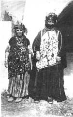 | Another way of hastening the birth, she said, was to procure thegopâl (stick) of theBaba Shaikh, who always carries one, and to beat the woman with it gently seven times. When the child is born, the mother must remain in bed seven days. She is never left alone lest she see angels or demons in various shapes and go mad. A particular danger is an evil fairy, the Rashé Shebbé or Shevvé, who may substitute a changeling for the human child, or harm mother and babe. On the seventh day after birth the mother gets up, takes a hot bath and then goes with her friends to running water or a spring and throws in seven handfuls of seven grains boiled in water (like a bride), and then crosses the water and eats the porridge with her friends. A similar ceremony takes place when the child cuts its first tooth. The father names the child, and when he does so, usually slaughters a sheep, or a fowl, and distributes the meat. The name chosen is often that of a dead relation, a grandfather, parent, brother, or deceased child, and some think the new-born infant a reincarnation of the person after whom it is named.2 | 2. Mira Wansa told me this. She has discussed reincarnation with theshaikhs, and said that when she described a curious dream she had in which she was a soldier, theshaikh told her that she had probably seen a past life in dream. Formerly, when a person died, thekocheks claimed to have the power of foreseeing in a vision how the departed soul would incarnate, but when I spoke of this to Qawwal Sivu in Baashika, he denied it and said, somewhat naively, that thekocheks had given up their visions nowadays "because they are frightened of the Government". |