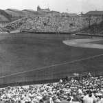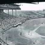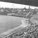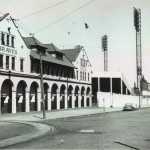 Original dimensions at Braves Field were 402 ft. (left), 550 ft. (center), and 402 ft. (right) leading to many inside the park homeruns. The field was surrounded by a 10 foot wall. Behind this wall were the tracks of the Boston and Albany Railroad. Outside the right field wall was one of Braves Field’s most iconic structures, the team’s ticket and executive offices that featured a facade of Spanish colonial and stucco with a red tile roof.