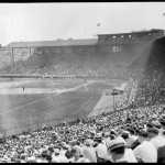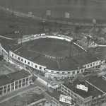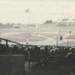 In 1901 the Boston Red Sox became charter members of the American League, giving Boston two professional baseball franchises. The Red Sox played at Huntington Avenue Grounds before moving intoFenway Park in 1912. After the Red Sox opened their new ballpark, owner of the Braves, James Gaffney purchased Allston Golf Club on Commonwealth Avenue for $100,000 to construct a new steel and concrete ballpark in 1912. Located one mile west of Fenway Park, construction began March 20, 1915 and was completed five months later when the Braves played the St. Louis Cardinals on August 18, 1915. Named after the team, Braves Field was the first ballpark to seat more than 40,000 fans. A single deck of 18,000 covered seats extended around homeplate and down both foul lines. Two uncovered pavilions extended down the lines to the foul poles, each holding 10,000 fans. In right field was a section of bleachers that seated 2,000 fans and was nicknamed “The Jury Box” after a sportswriter noticed only 12 fans sitting here during a game in 1918. The scoreboard was located above these seats.