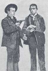 That was what Inspector Byrnes meant by calling the cheap lodging houses nurseries of crime. I have personally, as a police reporter, helped trace many foul crimes to these houses where they were hatched. They were all robberies to begin with, but three of them ended in murder. Most of my readers will remember at least one of them, the Lyman S. Weeks murder in Brooklyn, a thoroughly characteristic case of the kind I have described. A case they never heard of, because it was nipped in the bud, was typical of another kind. Two young Western fellows had come on, on purpose to hold up New York, and were practising in their lodging, but not, it seems, with much success, for the police pulled them in at their second or third job. When searched, a tintype, evidently of Bowery make, was found in the pocket of one, showing them at rehearsal. They grinned when asked about it. “We done a fellow up easy that way,” they said, “and we’d a mind to see how it looked.” They were lucky in being caught so soon. A little while, and the gallows would have claimed them, on the road they were travelling.