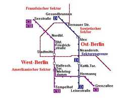 Auch entlang der innerberlinischen Sektorengrenze waren Grenzposten derDDR ein normaler Anblick geworden. Es wurde also in den folgenden Jahren immerschwieriger, die Grenze zu überqueren. Nur mit der U-Bahn und der S-Bahn wardies noch recht problemlos möglich. wurde im Strafgesetzbuch der DDR derTatbestand der "Republikflucht" unter Strafe gestellt, doch mehr undmehr Ostberliner und DDR-Bürger benutzten diese U-Bahnstrecken (und natürlichdie S-Bahn) für die Fluchtaus der DDR nach West-Berlin.