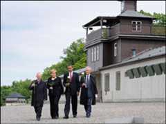 Mr. Obama visited the Nazi-era camp where 56,000 people died. He toured the memorial Friday with German Chancellor Angela Merkel and survivor Elie Wiesel.