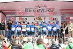 "I came here with two major goals," Farrar said in Verona. "The first one was to win one of the stages for sprinters. I targeted stage 3 in particular because that was the one dedicated to my friend Wouter Weylandt but it didn't happen. Now we've won the team time trial on May 9, exactly one year after his tragedy, but I didn't need that to remember him. I think of him every day. I'm very happy with this team time trial victory. Now I can go back to my first goal."