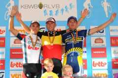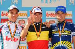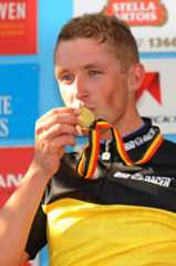 Stijn Devolder won his second Belgian national title in Leuven, crowning a long solo attack to claim the title and keep it in his Quick Step team. Second place went to Philippe Gilbert (Omega Pharma-Lotto) and third to Vacansoleil's Frederick Veuchelen, finishing about a half minute back.