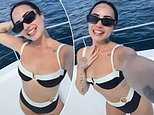 Demi Lovato models a tiny bikini to show off her newly slender figure as she dances on a yacht
