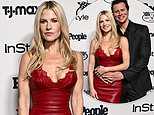Ali Larter stuns in a plunging red leather dress as she puts on a loved up display with her husband at the Drive-By F1 party in Las Vegas